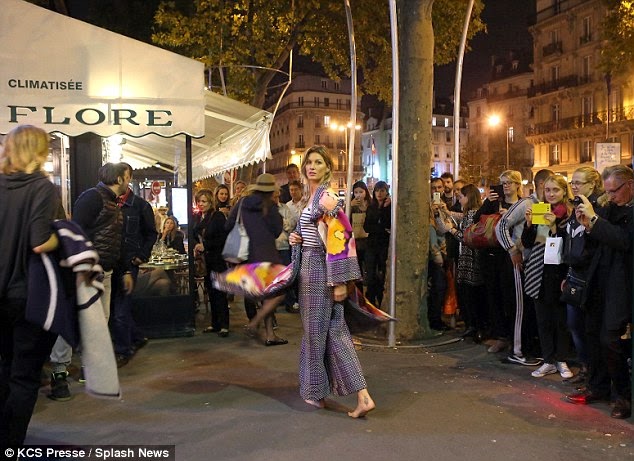She has been letting off gun, firing a Chanel attempt to make public opinion for the past few days in Paris . And while Gisele Bundchen was the high level of glamour on put on Thursday, she seemed to have put out of mind one important thing. The 34-year-old wore an in harmony with latest tastes olive green group and dramatic make-up, but went without shoes as she put forward as having right to give good day to a cover for driver while made a thin skin.