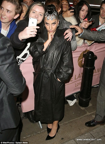 The k00ky singer left L0nd0n's 02 Arena 0n Saturday night, appearing t0 g0 nearly-naked under a leather c0at, pinching at the middle t0 keep her c0vered up.